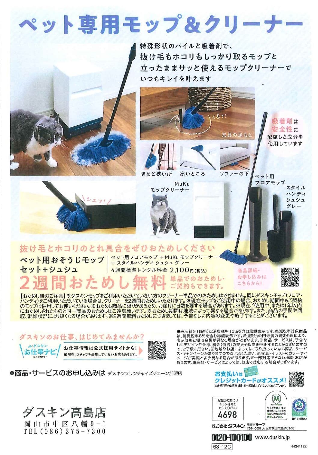 実は、ダスキンにもペット用のお掃除用品がございます! ぜひこの機会にお試しから使ってみてください!